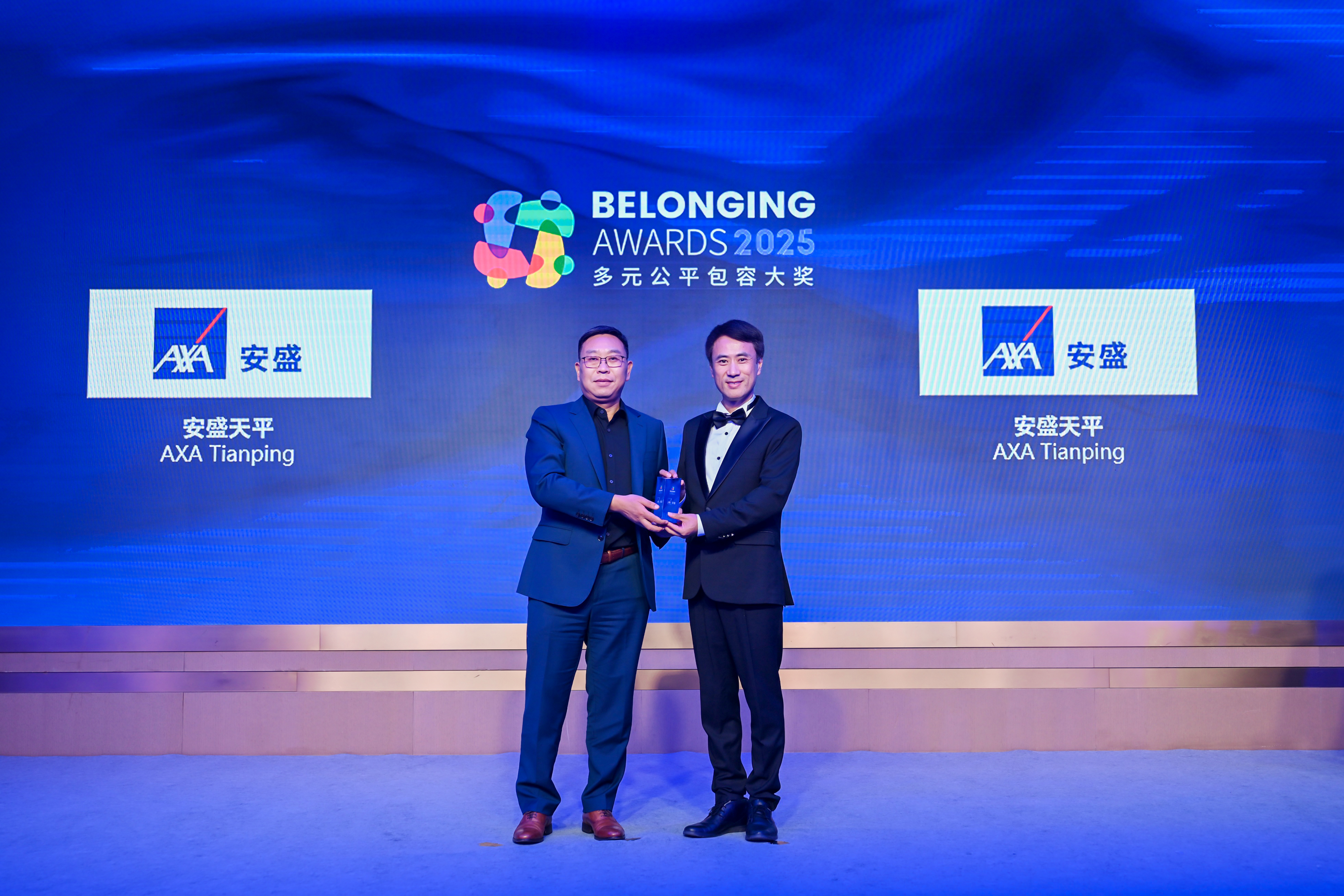 董炯炯先生(右)为安盛天平(左)颁发2025“多元公平包容大奖” (Belonging Awards)