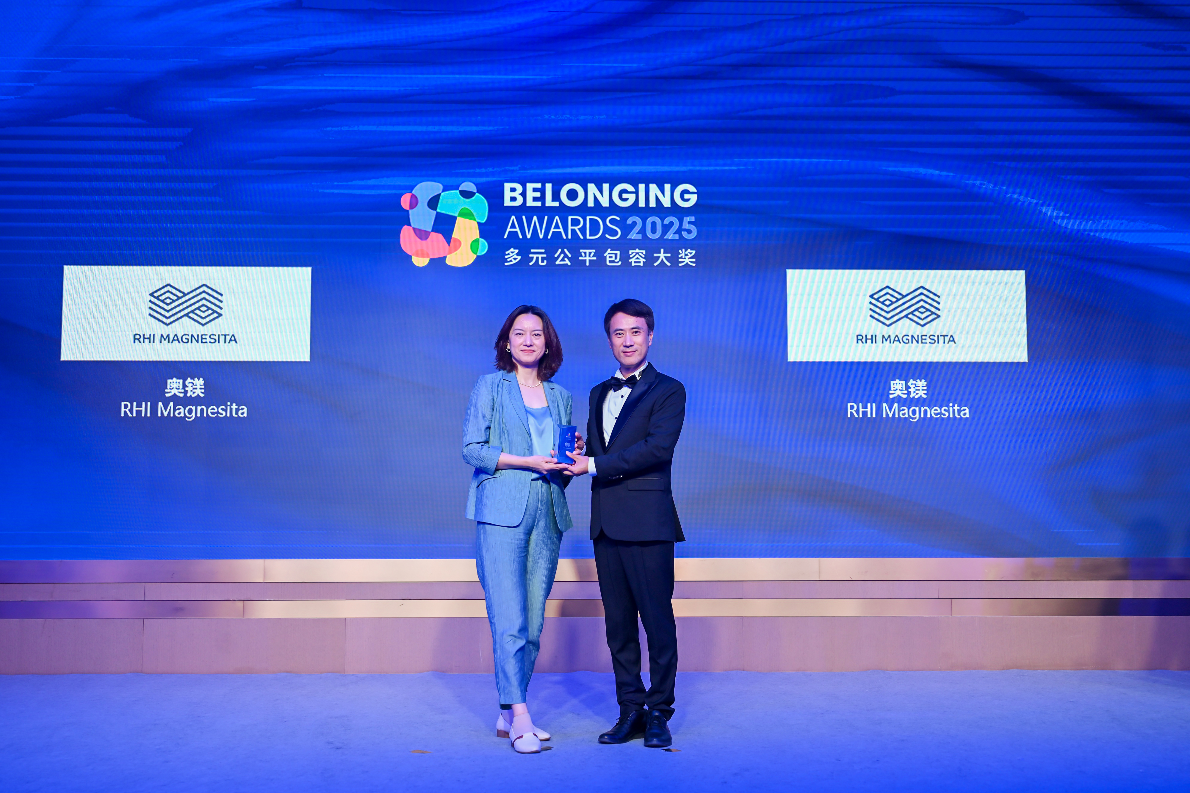 董炯炯先生(右)为奥镁(左)颁发2025“多元公平包容大奖” (Belonging Awards)