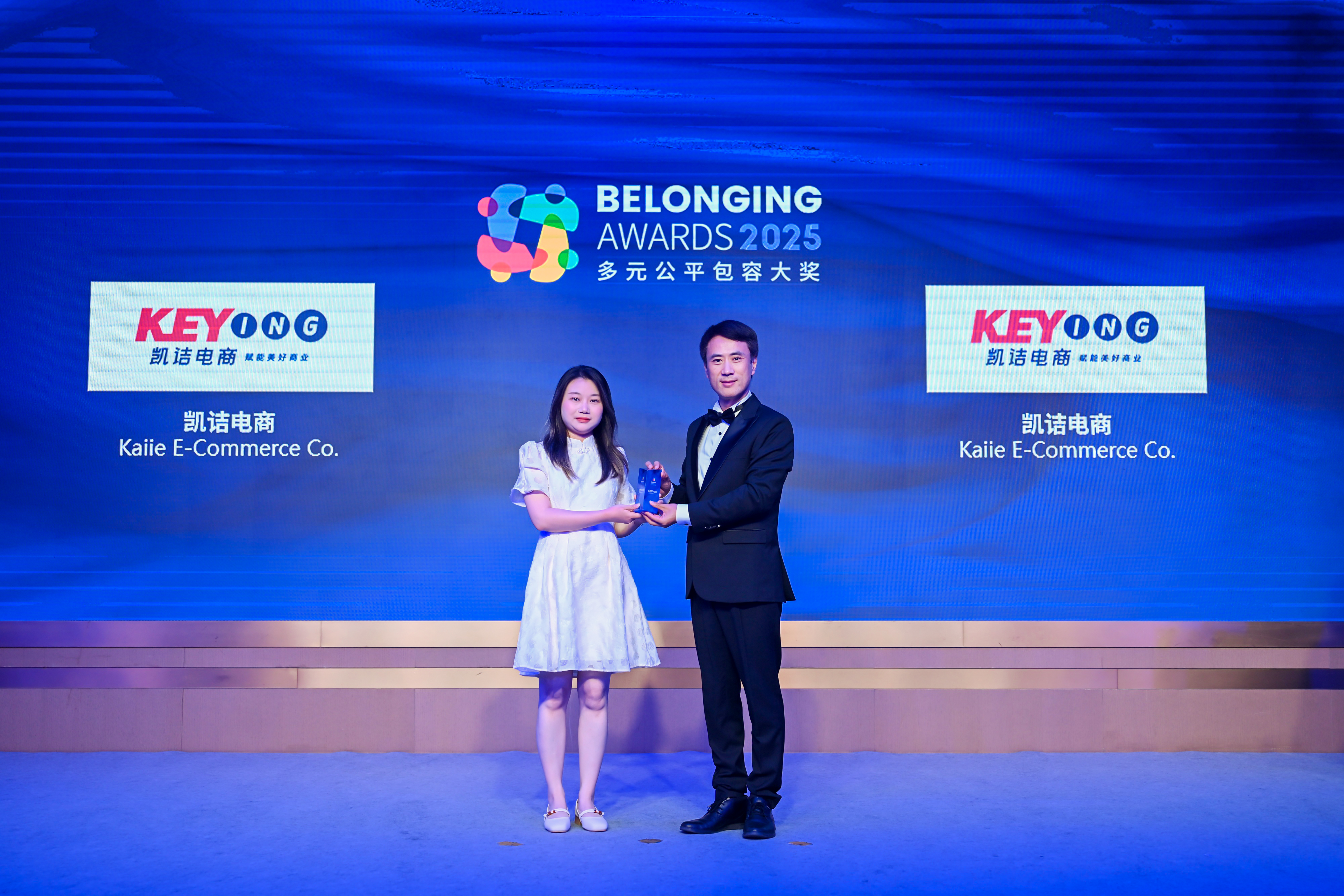 董炯炯先生(右)为凯诘电商(左)颁发2025“多元公平包容大奖” (Belonging Awards)