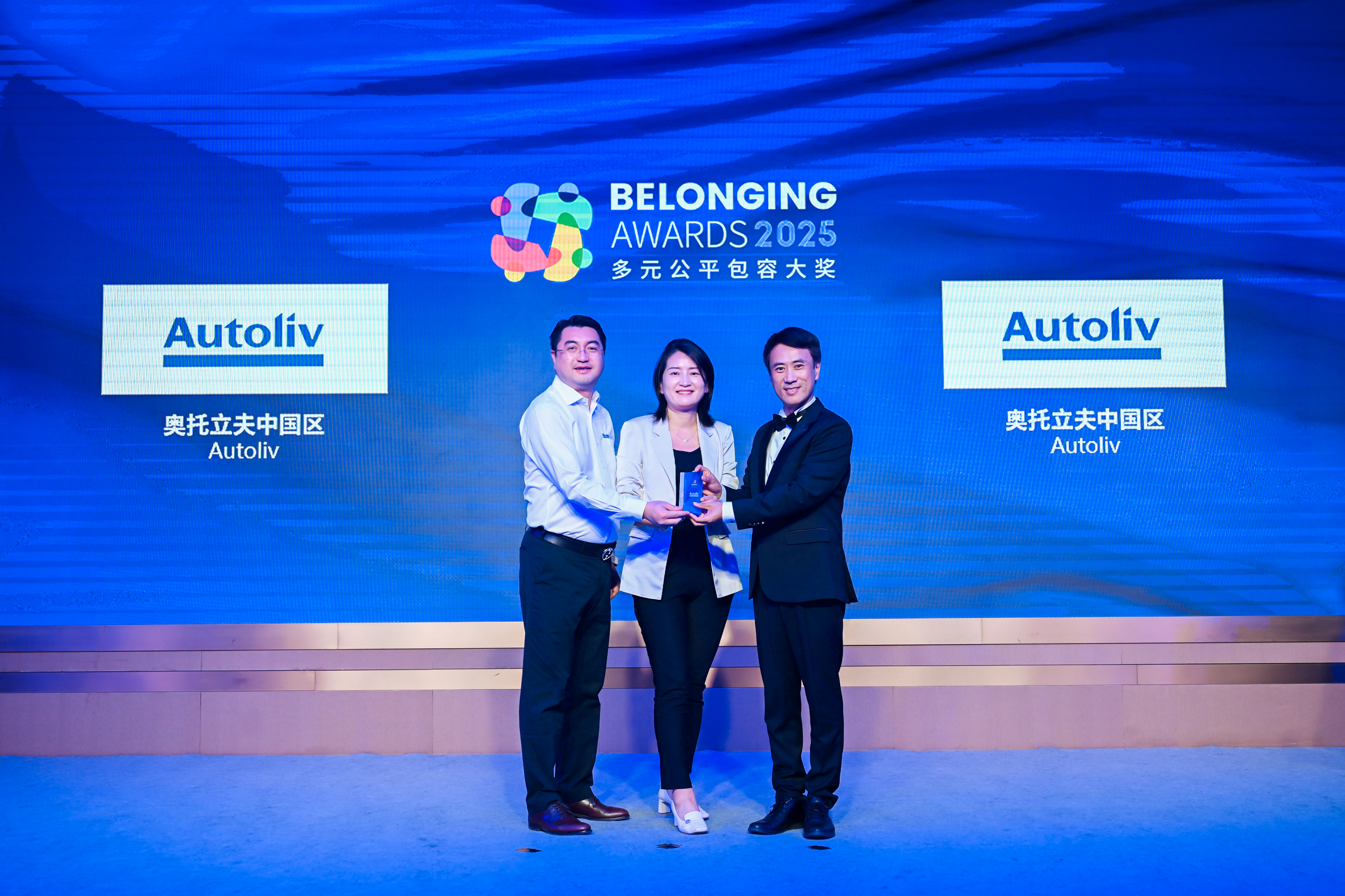 董炯炯先生(右)为奥托立夫中国区(左)颁发2025“多元公平包容大奖” (Belonging Awards)