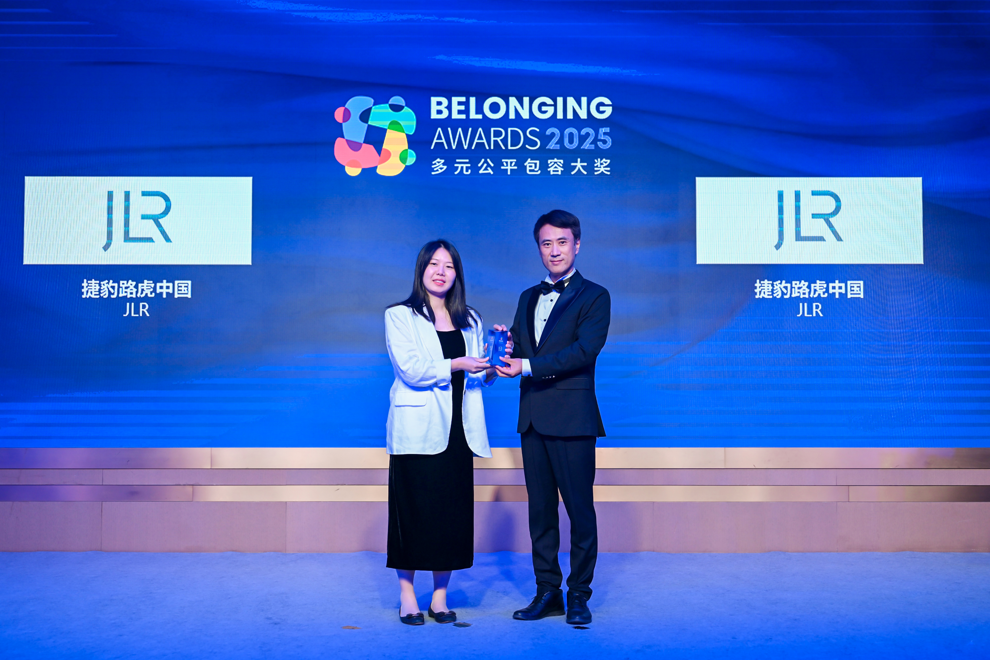 董炯炯先生(右)为捷豹路虎中国(左)颁发2025“多元公平包容大奖” (Belonging Awards)