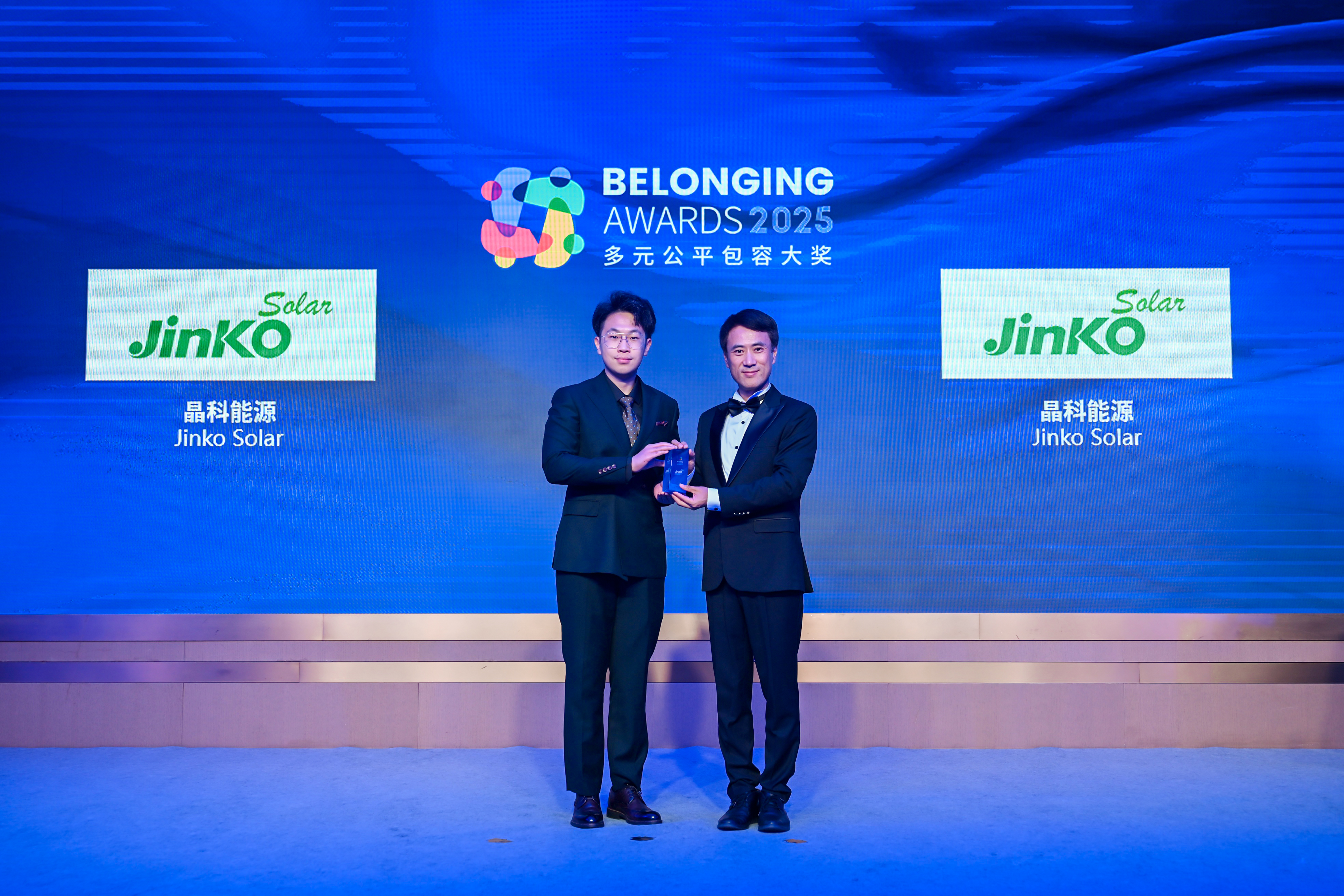 董炯炯先生(右)为晶科能源(左)颁发2025“多元公平包容大奖” (Belonging Awards)