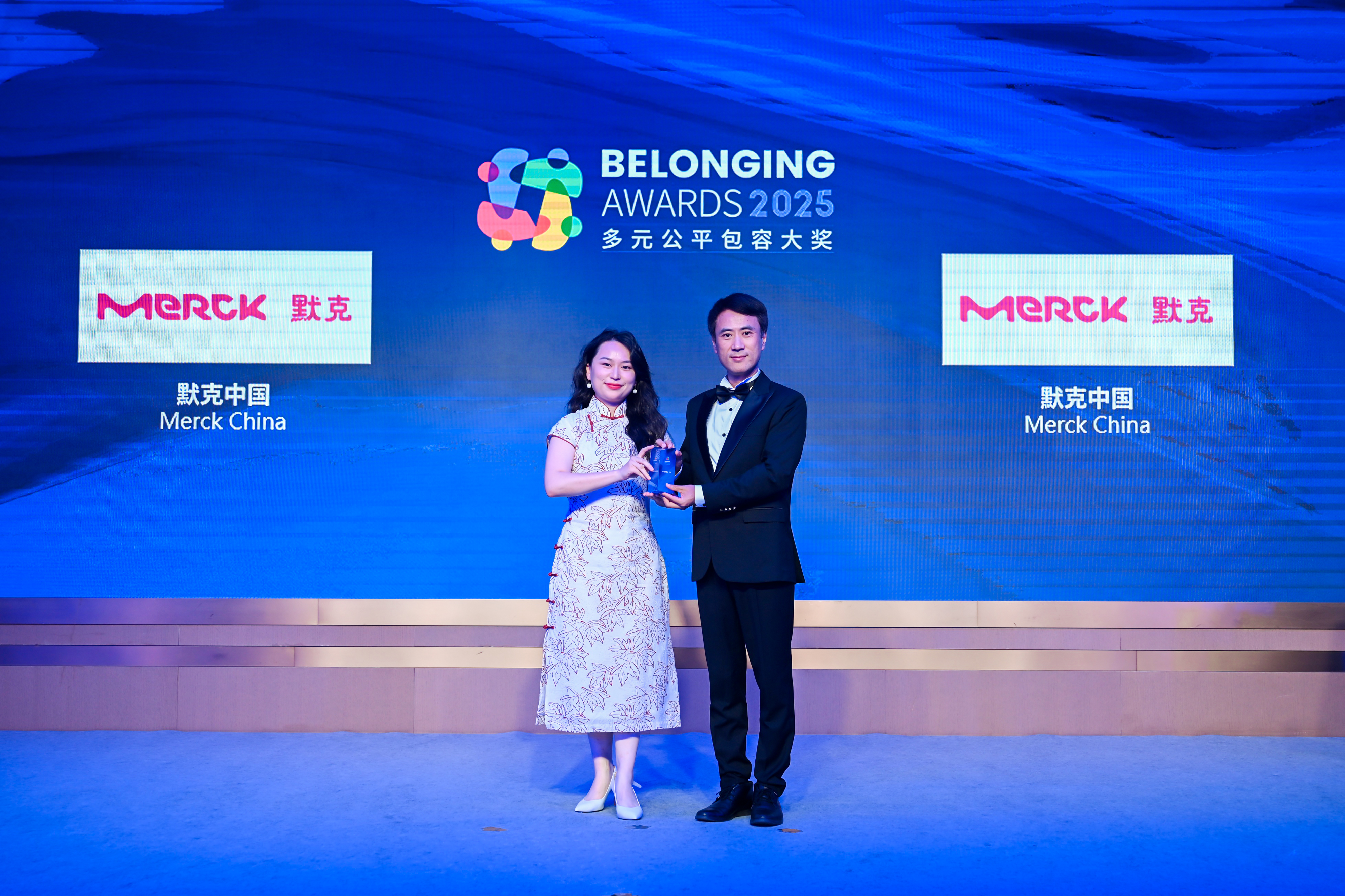 董炯炯先生(右)为默克中国(左)颁发2025“多元公平包容大奖” (Belonging Awards)