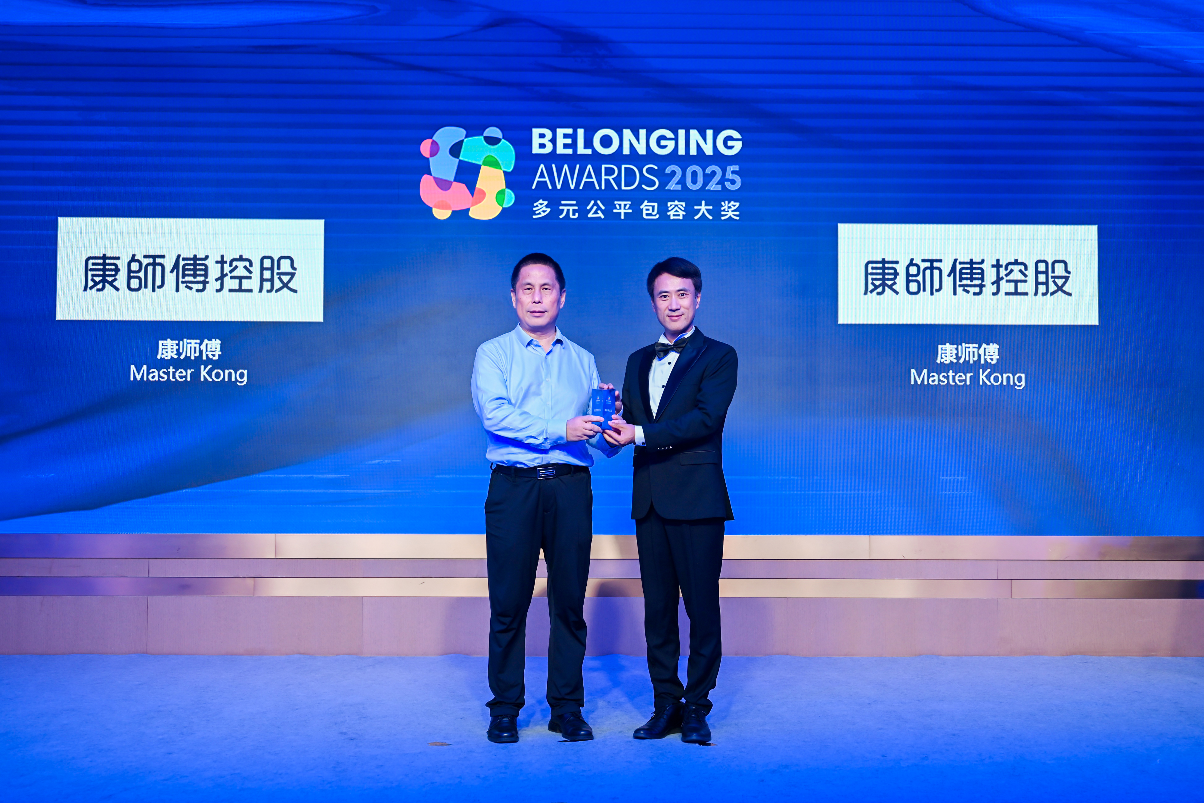 董炯炯先生(右)为康师傅(左)颁发2025“多元公平包容大奖” (Belonging Awards)