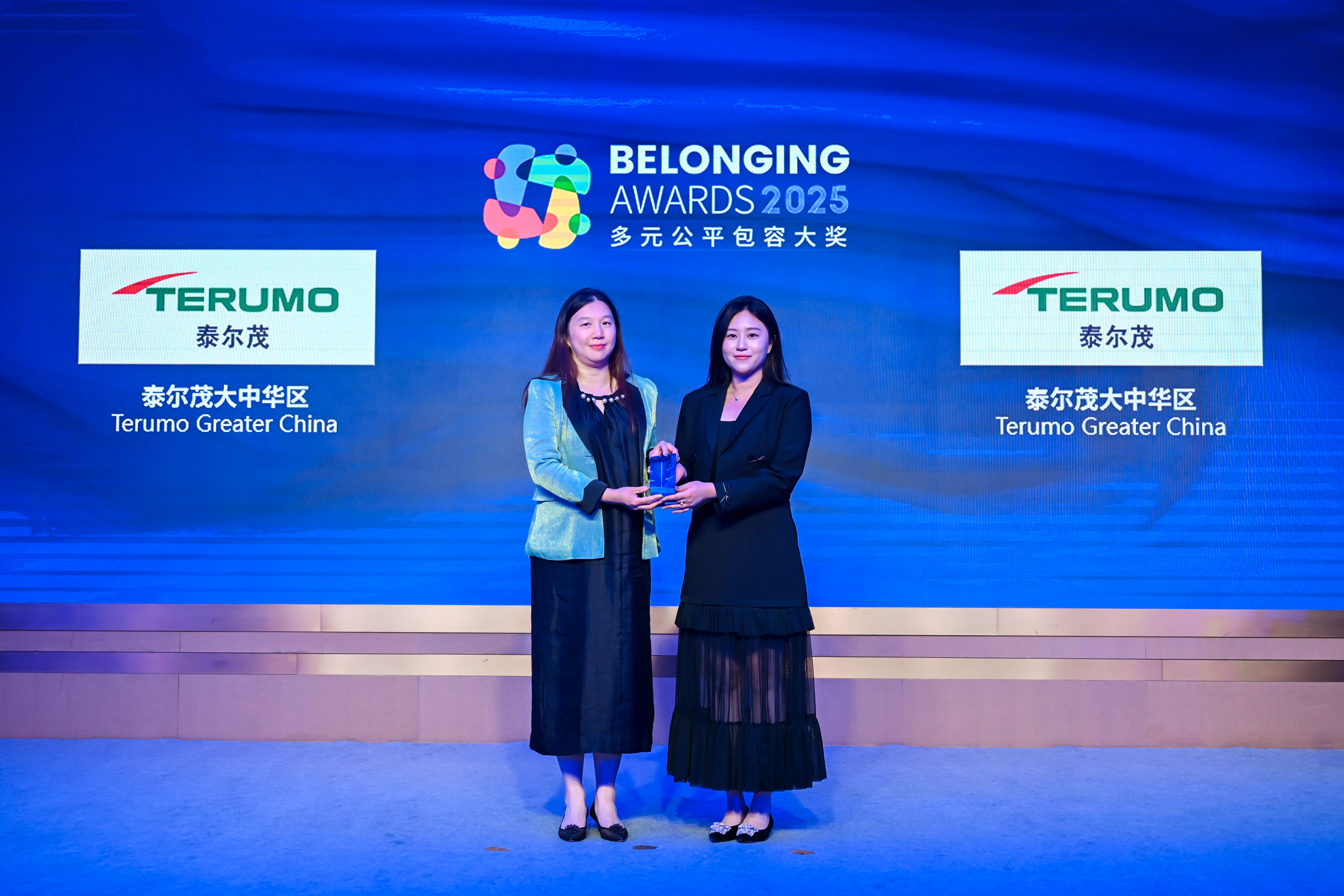 傅海洋女士(左)为泰尔茂大中华区(右)颁发2025“多元公平包容大奖” (Belonging Awards)