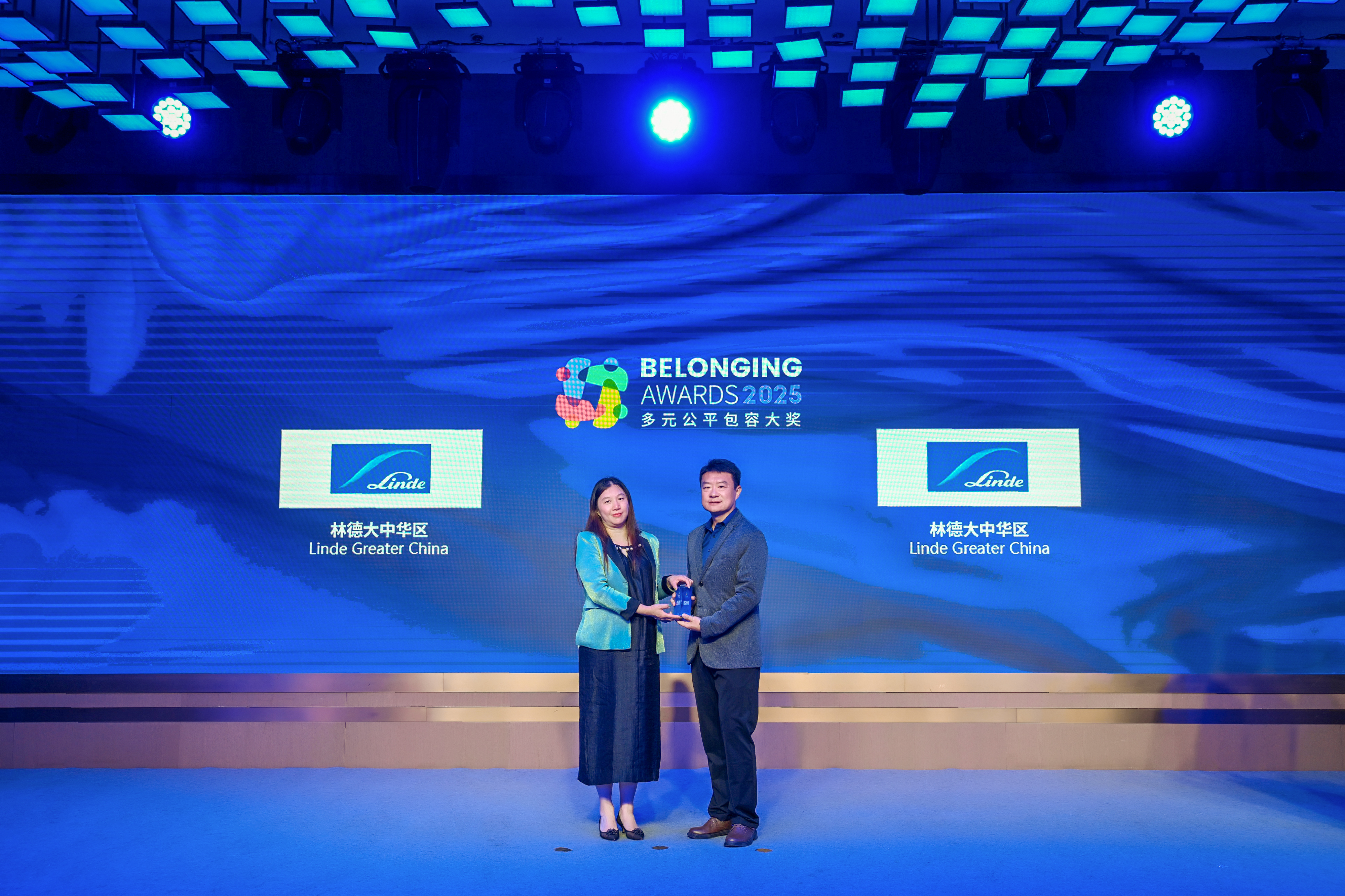 傅海洋女士(左)为林德大中华区(右)颁发2025“多元公平包容大奖” (Belonging Awards)