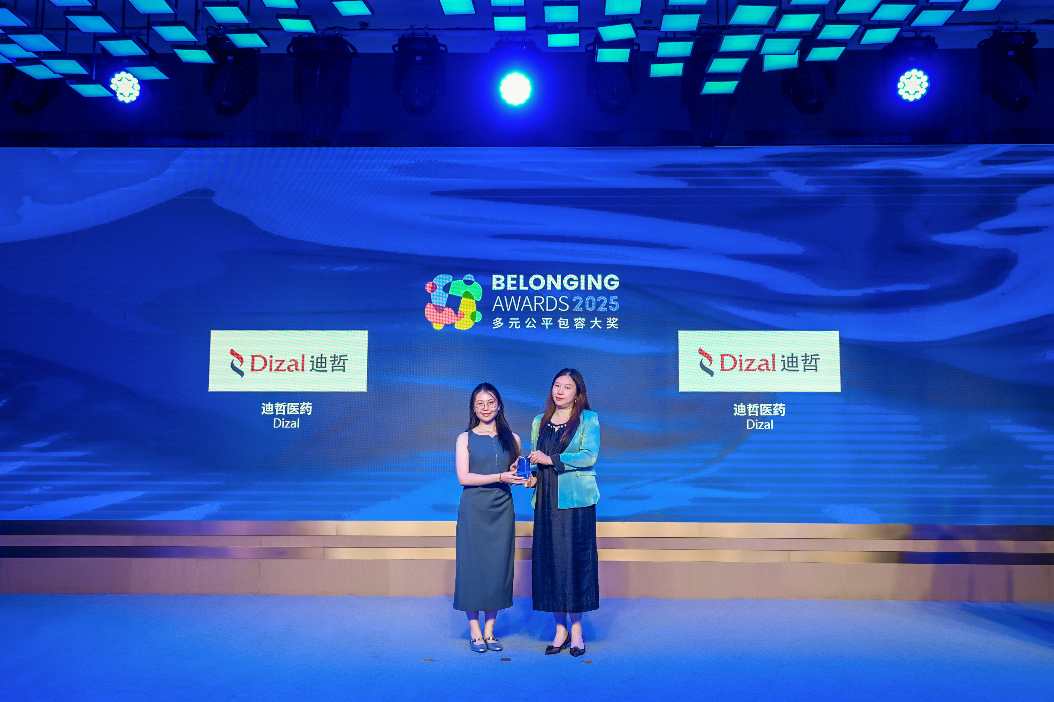 傅海洋女士(右)为迪哲医药(左)颁发2025“多元公平包容大奖” (Belonging Awards)