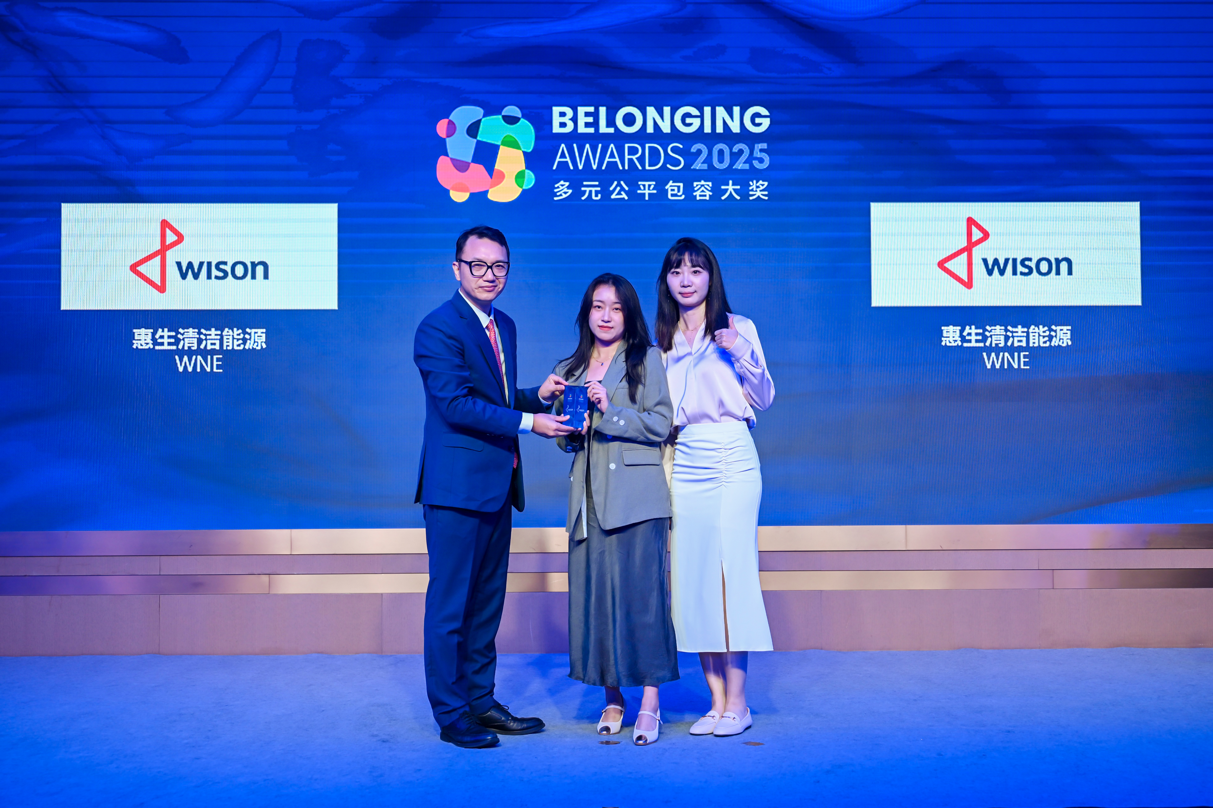 唐秋勇先生(左)为惠生清洁能源(右一、右二)颁发2025“多元公平包容大奖” (Belonging Awards)