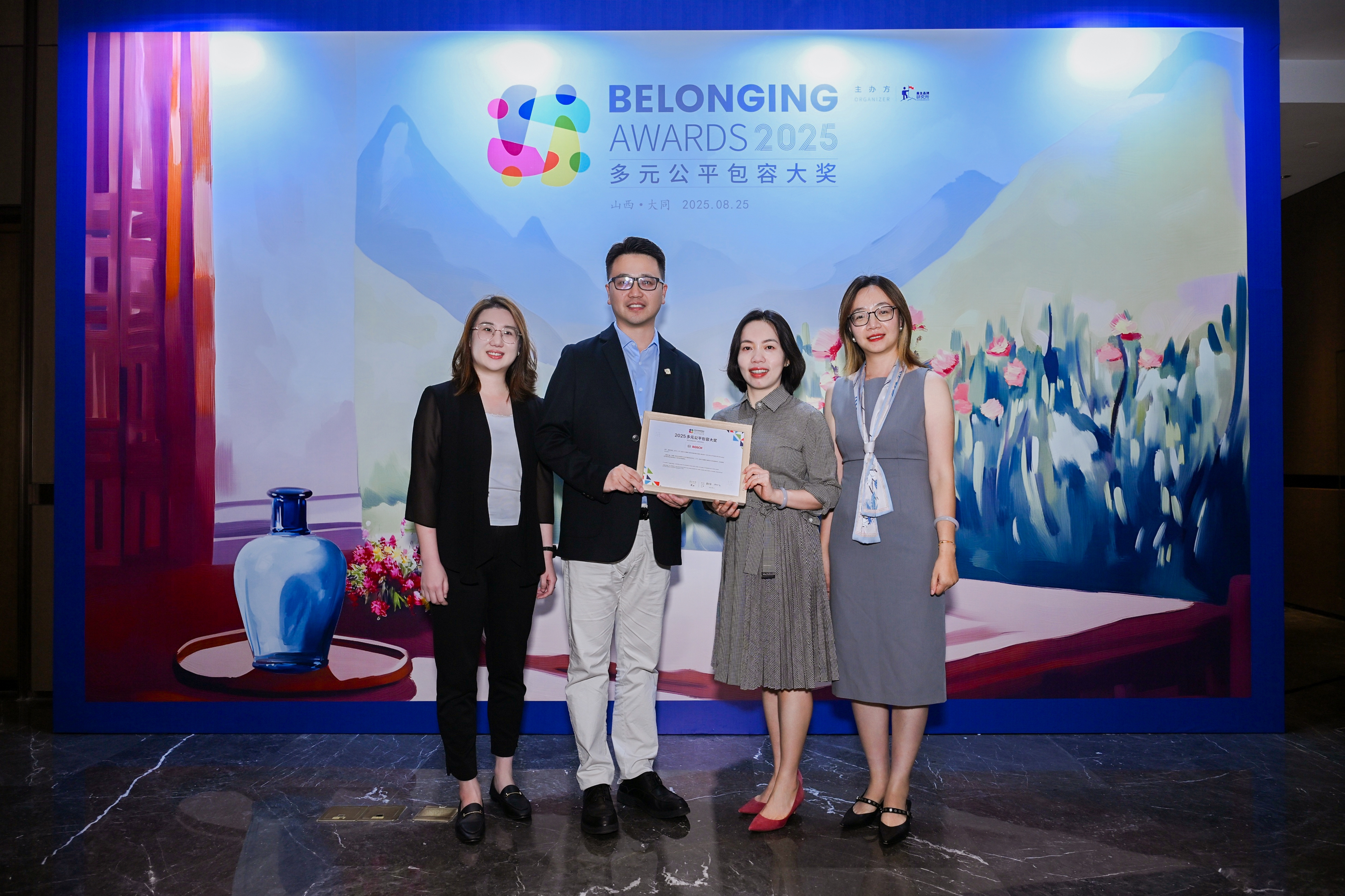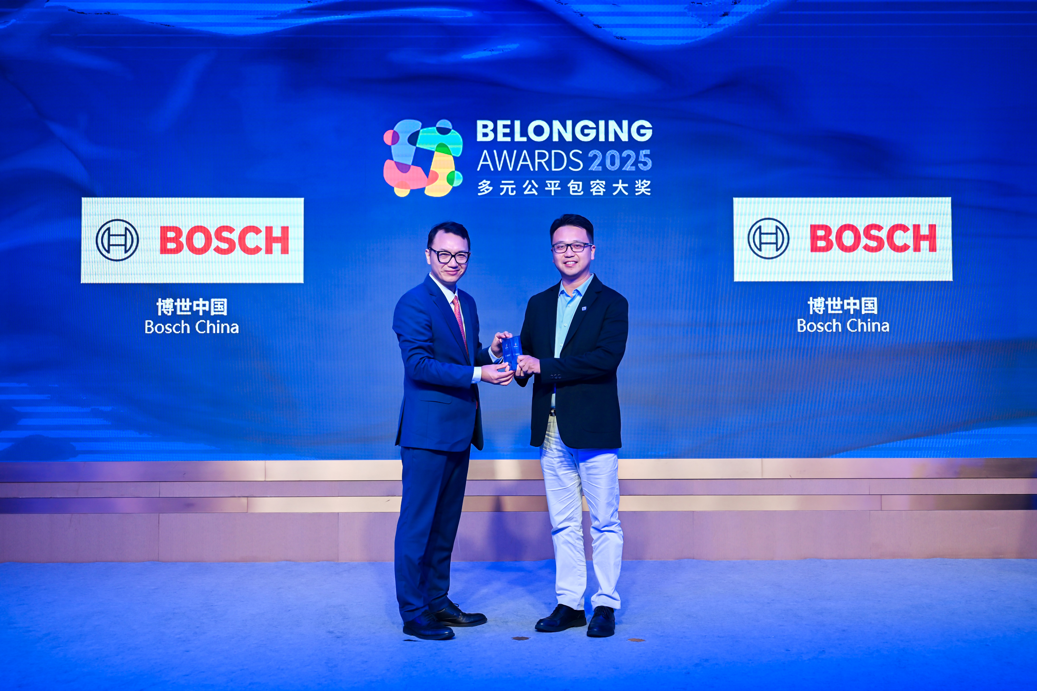 唐秋勇先生(左)为博世中国(右)颁发2025“多元公平包容大奖” (Belonging Awards)