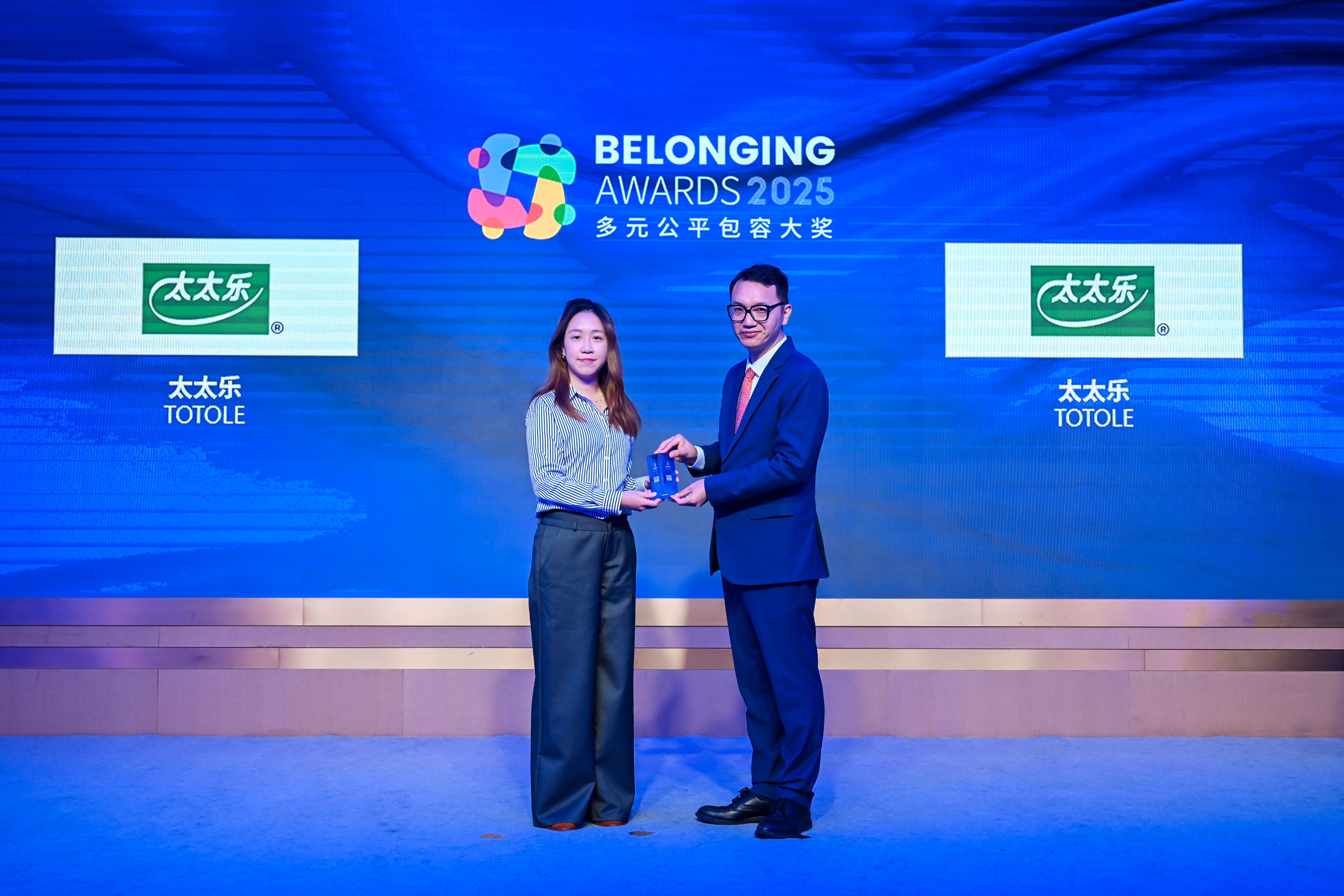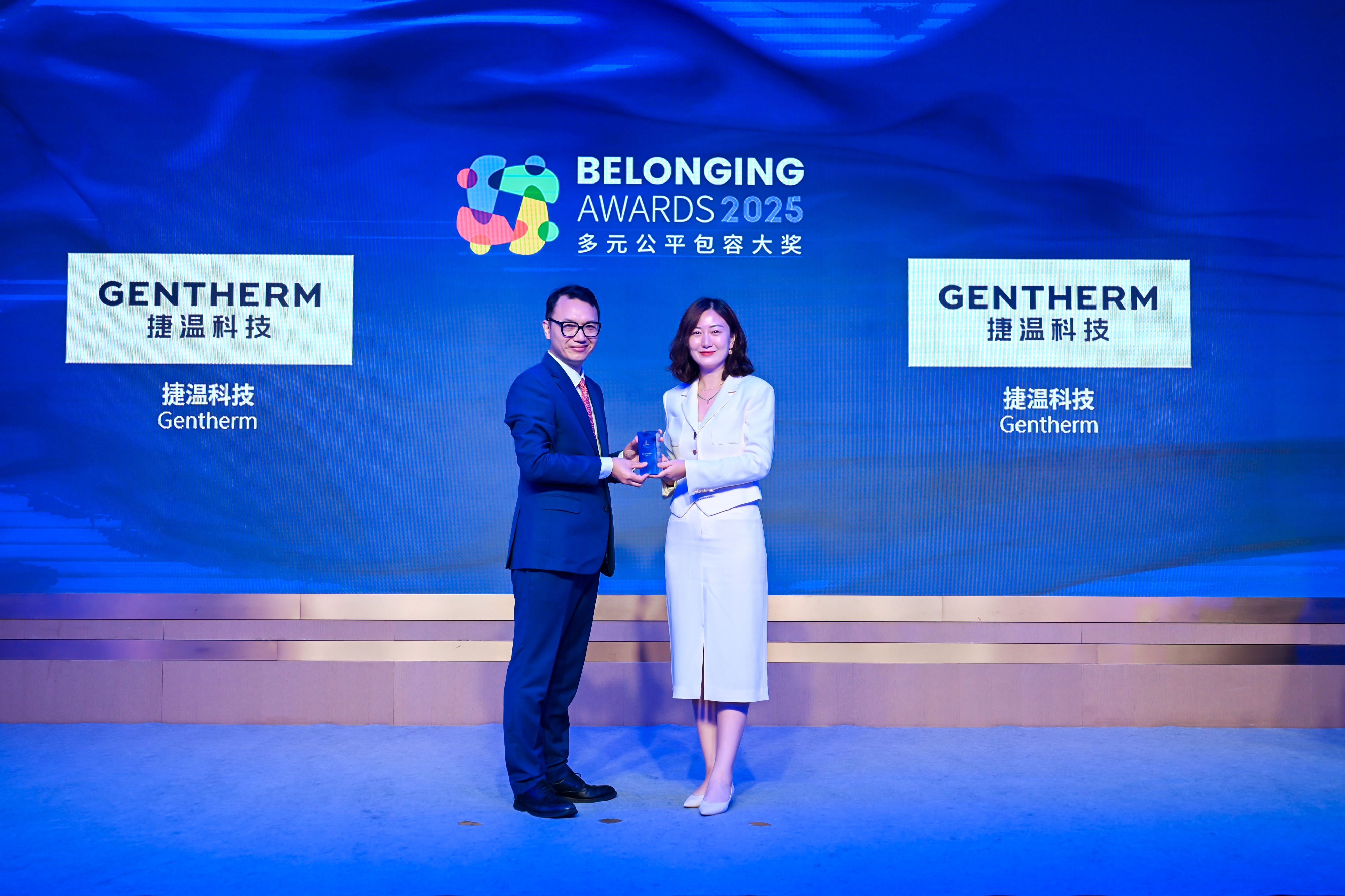 唐秋勇先生(左)为捷温科技(右)颁发2025“多元公平包容大奖” (Belonging Awards)
