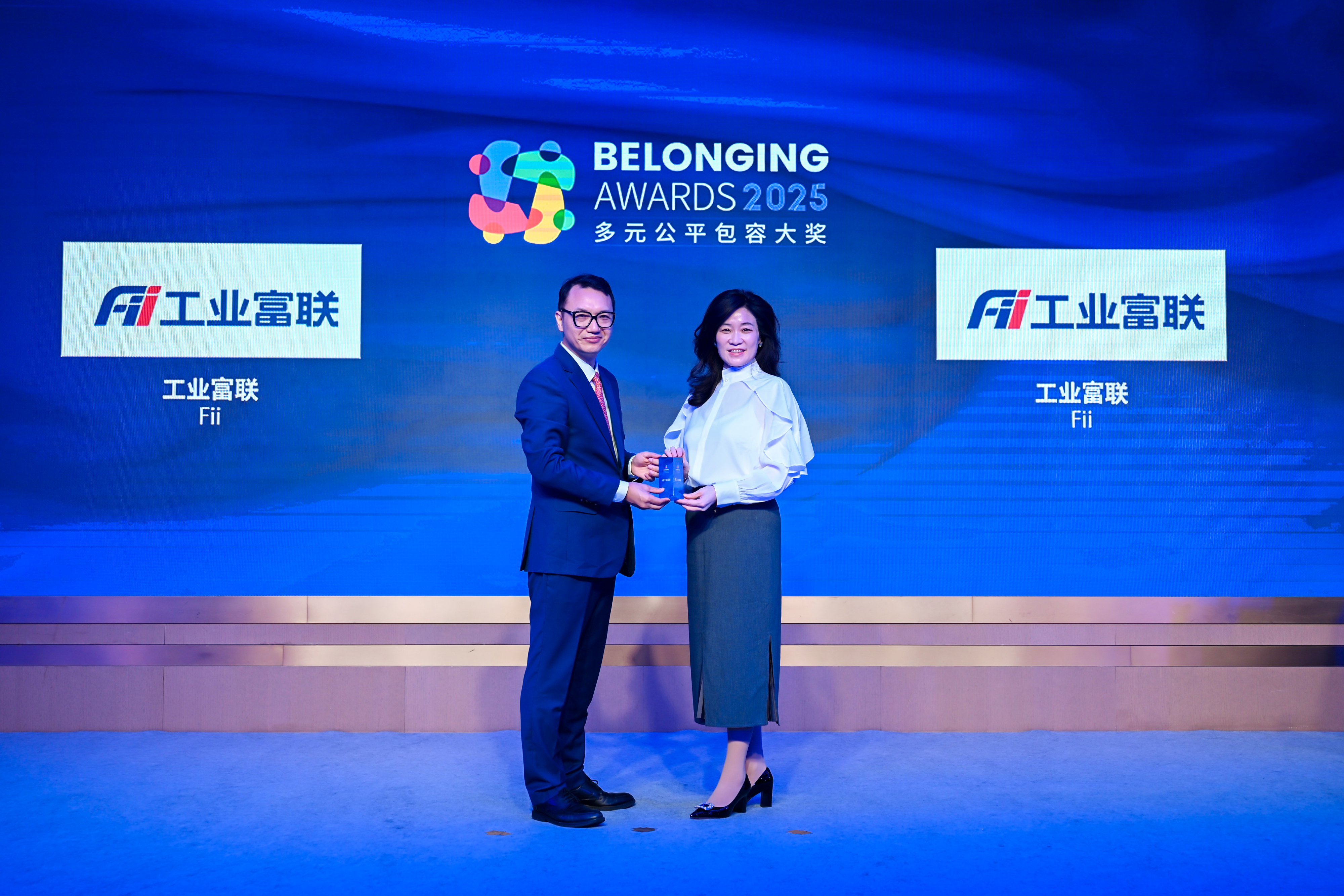 唐秋勇先生(左)为工业富联(右)颁发2025“多元公平包容大奖” (Belonging Awards)