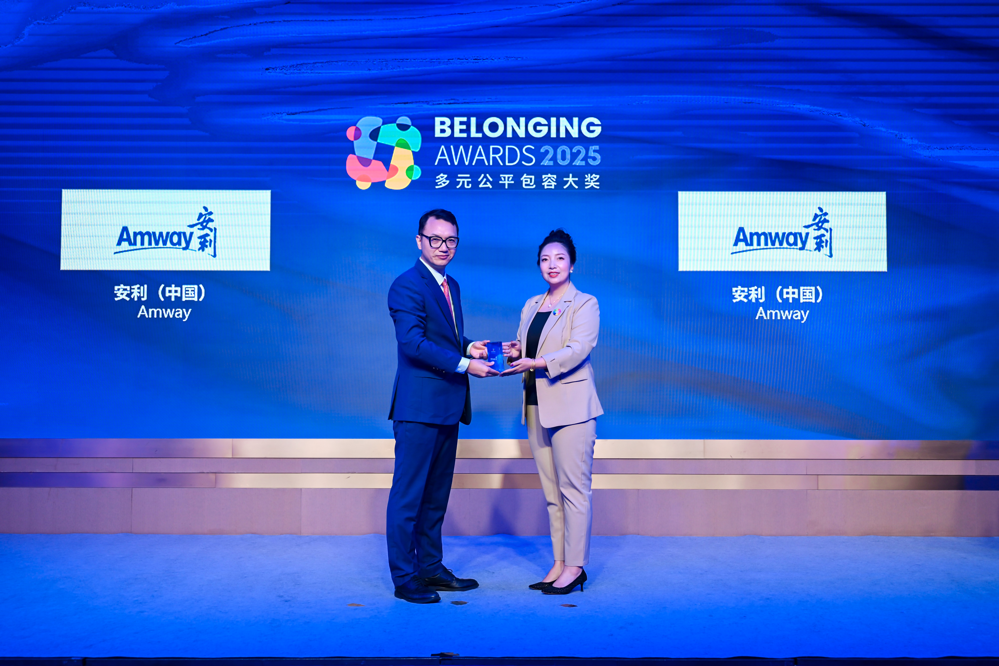 唐秋勇先生(左)为安利(中国)(右)颁发2025“多元公平包容大奖” (Belonging Awards)