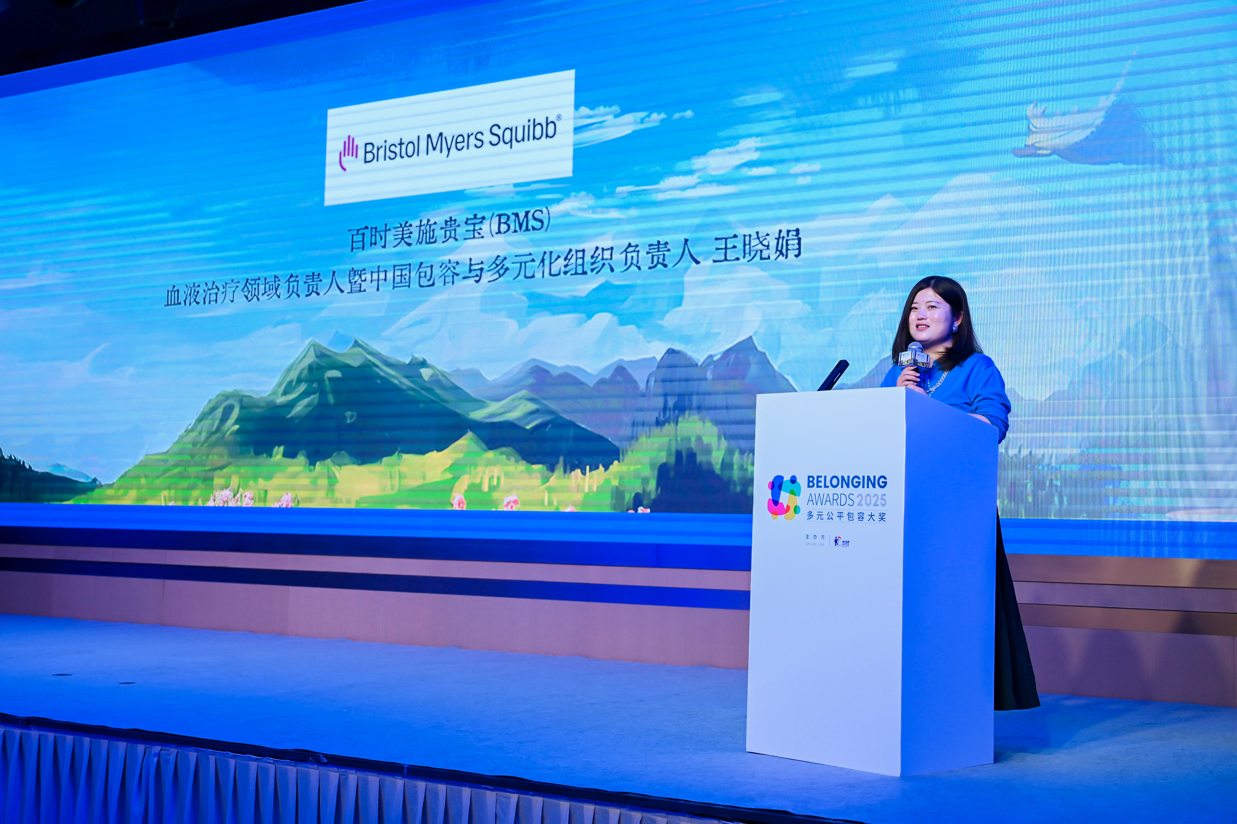 全球领先的生物制药公司百时美施贵宝(BMS)血液治疗领域负责人暨中国包容与多元化组织负责人 王晓娟女士上台发表获奖感言。